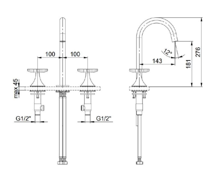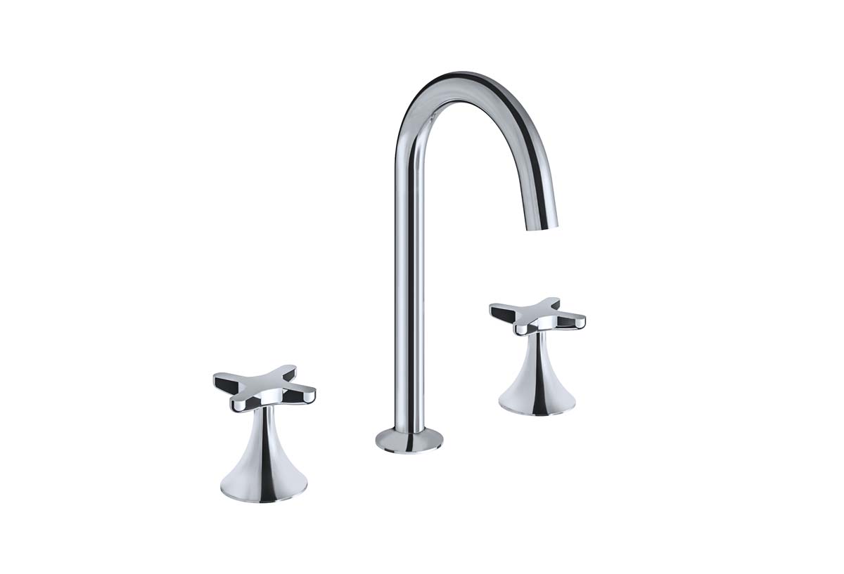 The Three tap-hole deck basin mixer in the Cruz range is a carefully crafted basin mixer, suitable for most basins, with three tap-holes. The offset cross shaped handles, combine well with the smooth, curved spout to create a transitional basin mixer, suitable for traditional and more modern bathroom basins.